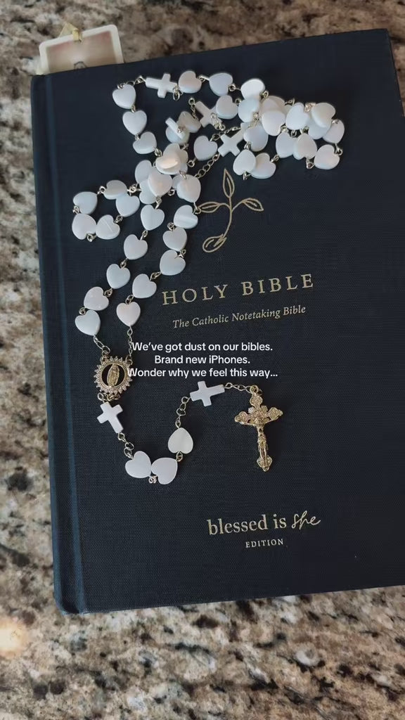Embrace faith and elegance with our "Her Heart Shines" Catholic Rosary, beautifully handcrafted with luminous pearl heart beads, delicate cross accents, and exquisite 18K gold-filled details. Featuring a graceful Mother Mary centerpiece and intricately designed crucifix, this rosary radiates devotion and timeless beauty.